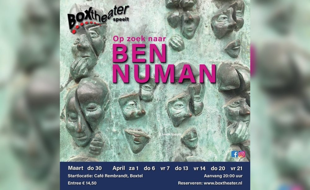 In een oude schuur in het centrum van Boxtel speelt Boxtheater dit bijzondere stuk. In drie maanden heb ik Boxtheater begeleid in het schrijven en maken van een eigen stuk. Dichtbij de spelers zelf. Wat betekent het om in het hier en nu te zijn? Waar vinden we Ben Numan?